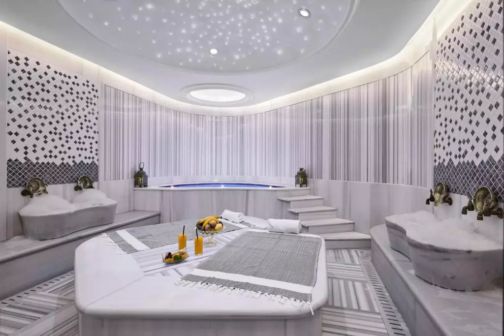 مهمانان میتوانند از خدمات ماساژ در اسپا لذت ببرند که شامل مرکز تناسب اندام، حمام ترکی، وان آب گرم و سونا است. همچنین دوشهای آروماتراپی، تختهای آبی درمانی و فواره یخی نیز موجود است.